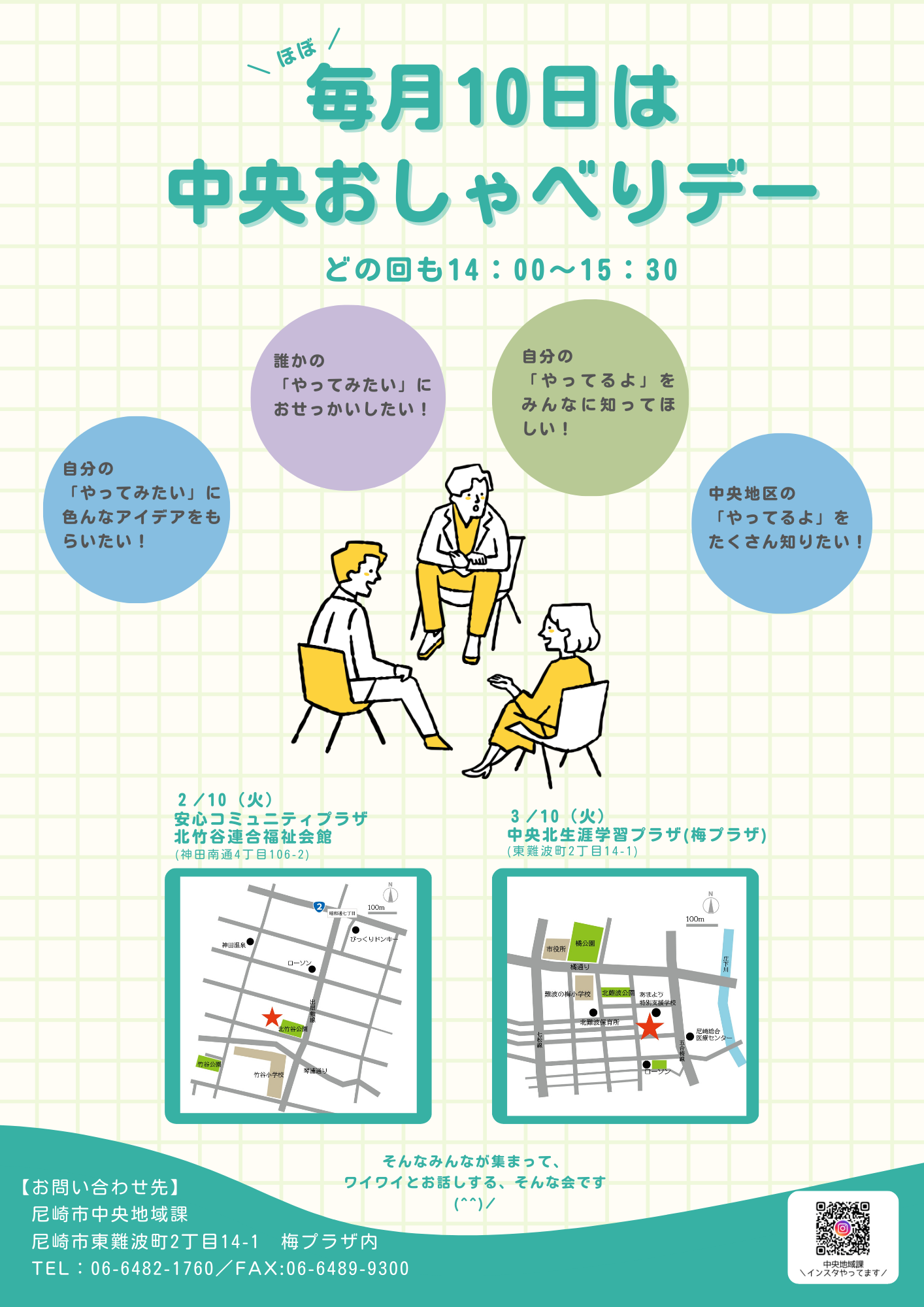 問合せ 尼崎市中央地域課 尼崎市東難波町2丁目14‐1 梅プラザ内