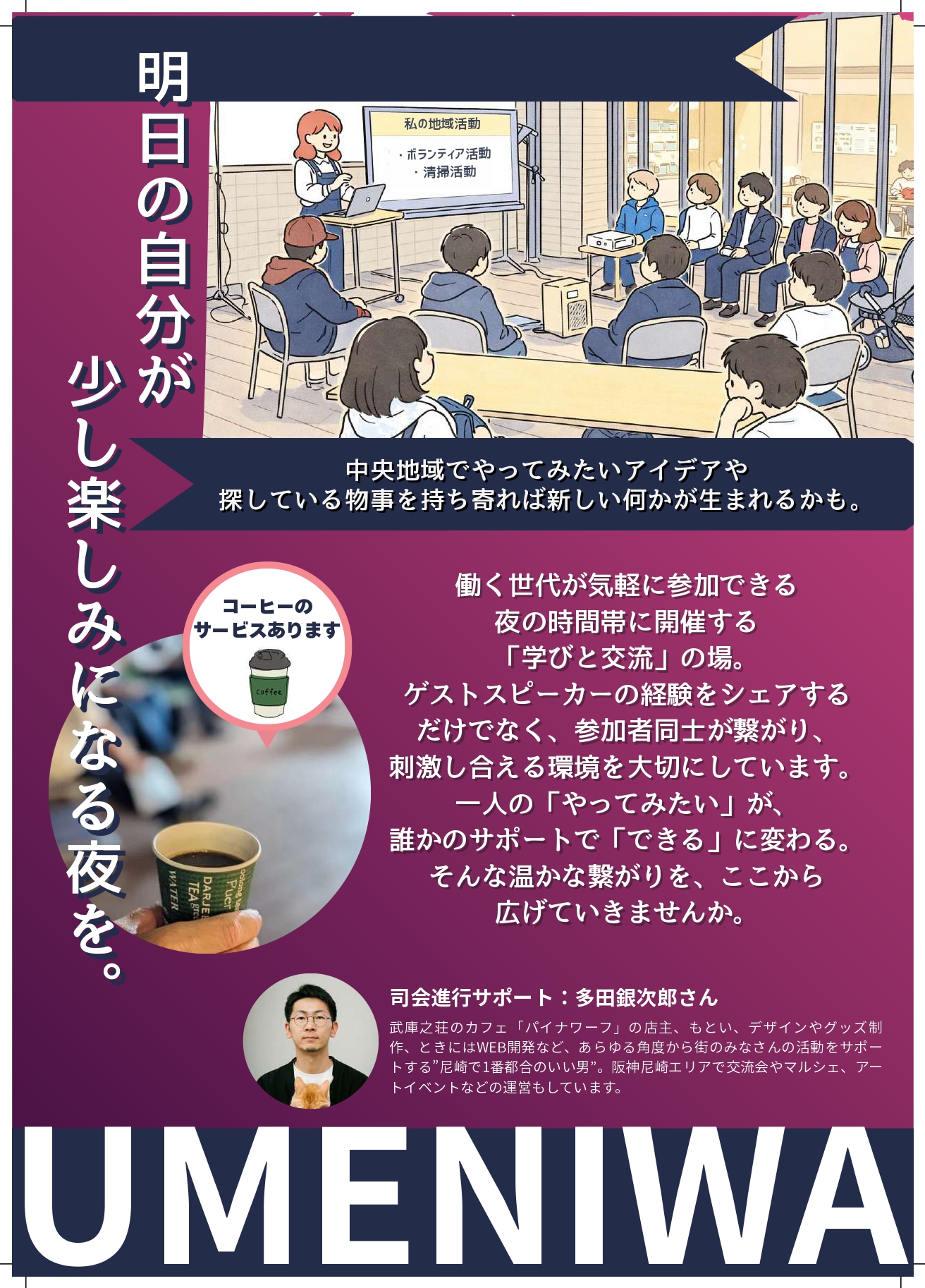 毎回、地域で活動する方を招いて自身の活動について