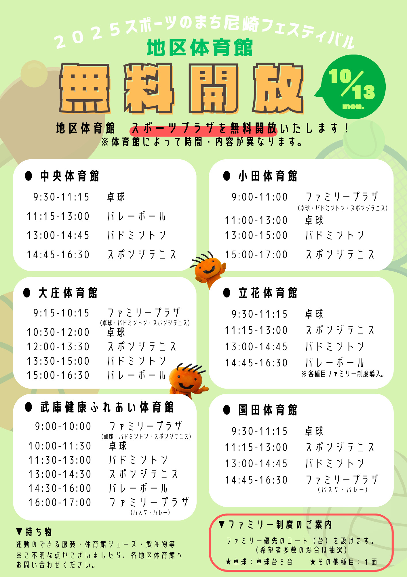 10月13日 | ファミリーTime | 卓球 | バドミントン | スポンジテニス |